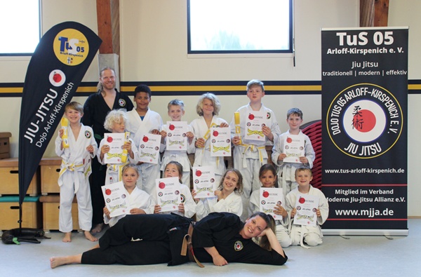 Genau hier schließt sich der Kreis und wir sind bei der Selbstverteidigungssportart „Jiu-Jitsu“ angelangt. Das regelmäßige Training in dieser Sportart fördert neben der persönlichen Sicherheit auch die Effektivität in kritischen Momenten. Nun ist es nicht so leicht, Kinder von 7 bis 12 Jahren für 150 Minuten „bei der Stange“ zu halten. Der erfahrene Jugendwart, André, weiß natürlich, dass dies am besten mit sehr interessanten Spielen gelingen kann. Dementsprechend hatte er wieder einiges vorbereitet und die Kinder waren die ganze Zeit mit Begeisterung und konzentriert dabei.