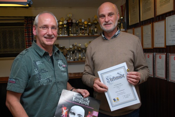 Uli Kessel ehrt Dieter Wiedemann (rechts) für 50 Jahre Vereinmitgliedschaft