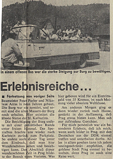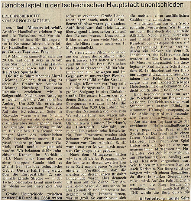 Einen Zeitungsbericht aus der Kölnischen Rundschau vom 16. Mai 1972 mit einem von ihm damals selbst verfassten Erlebnisbericht über die erste Prag-Fahrt der Handballer im Jahre 1972.
