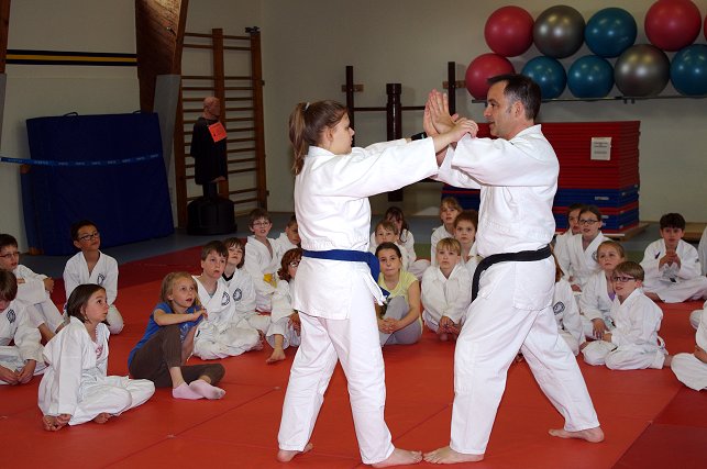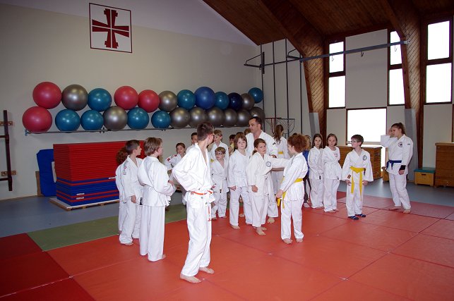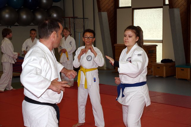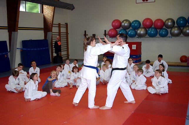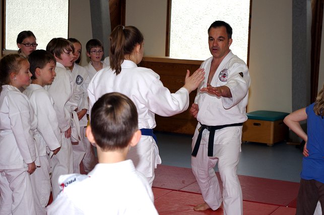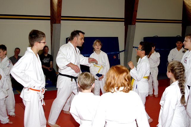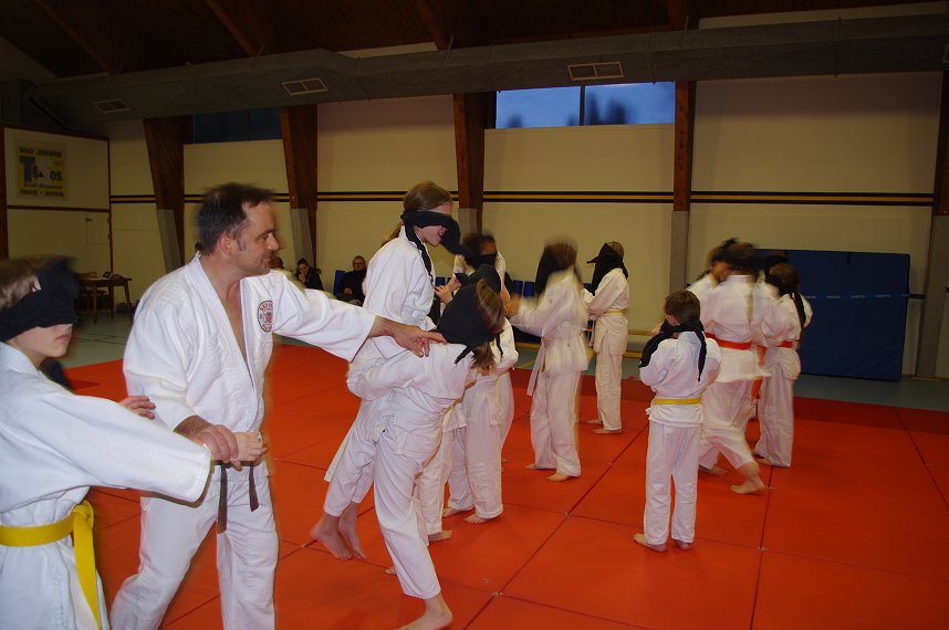 insbesondere am Jiu Jitsu zu wecken. Die Kinder werden auf spielerische Art "betriebsbereit" gemacht für die Abwehrtechniken, die André zwischen den Spielen immer wieder einstreute. Die Stimmschulung kam auch diesmal nicht zu