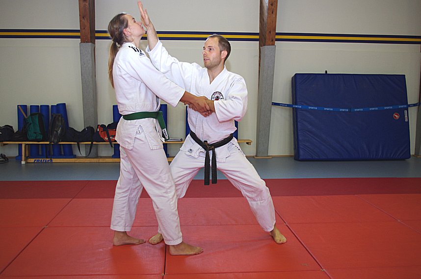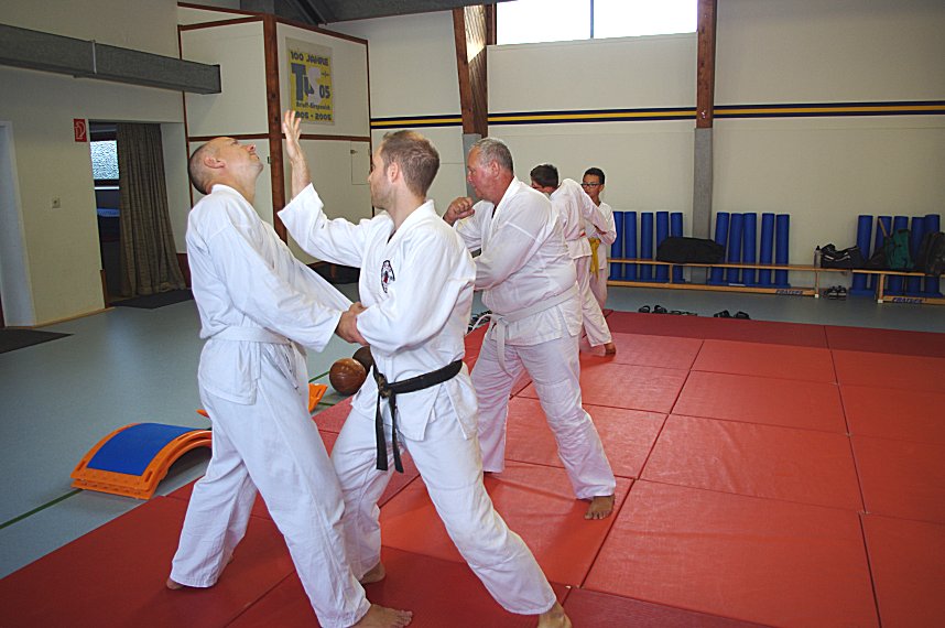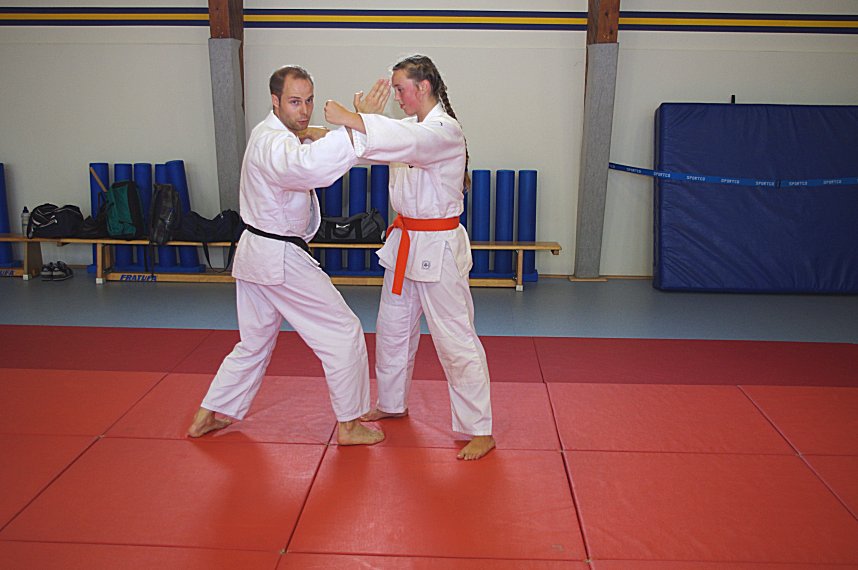 Fragen über Fragen, die im Kurs von den Vereinstrainern Josef Flecken und Elena Mies beantwortet wurden. Neben der Theorie wurden auch verschiedene Angriffe simuliert und Lösungsvorschläge angeboten. Die angebotene Zeit in diesen Workshops war natürlich viel zu kurz um allen möglichen Angriffen gerecht zu werden.