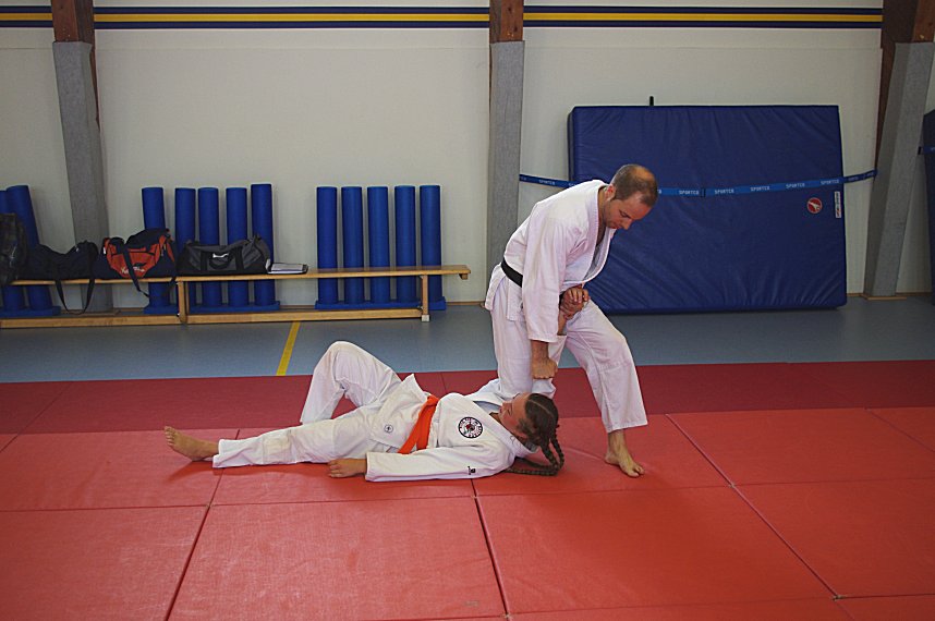 Christian Weber (3. Dan Jiu Jitsu, 2. Dan Jiudo) aus Mülheim a.d. Ruhr begrüßen. Als Thema hatte sich Christian Judo Grundtechniken und deren Umsetzung in der Selbstverteidigung ausgesucht.