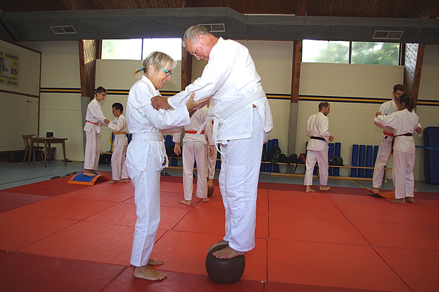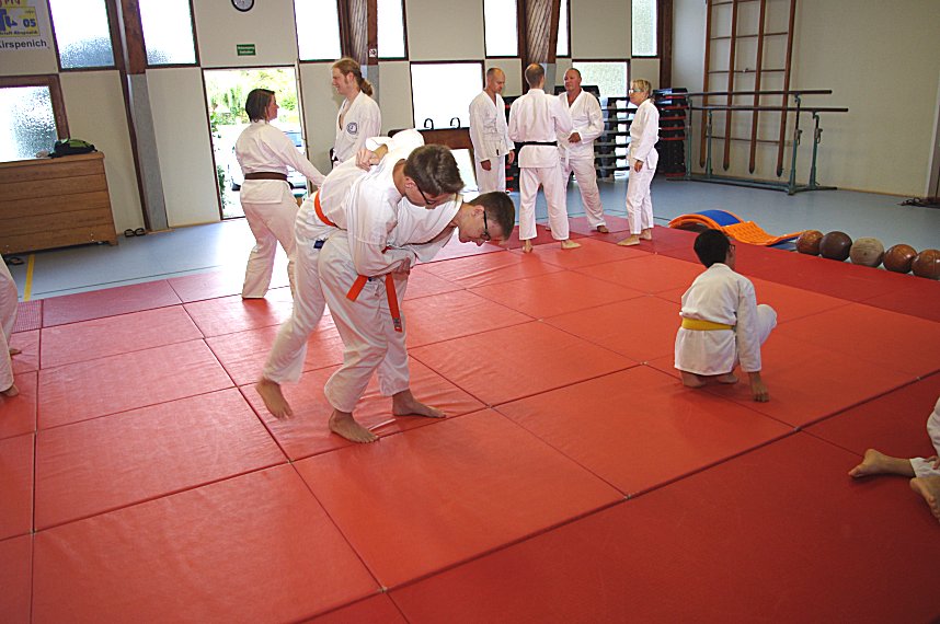 In vielen, vorbereitenden, Varianten ließ er die Lehrgangsteilnehmer/innen zum Teil zu Dritt die vorgegebenen Judowürfe aus dem Prüfungsprogramm des DJJB üben bevor die eigentlichen Würfe ausgeführt wurden. Der Lehrgang war für Gelb-, bis Grüngurte ausgeschrieben. Christian hatte für jeden Gurtgrad einen entsprechenden "Schwierigkeitsgrad" im Gepäck.