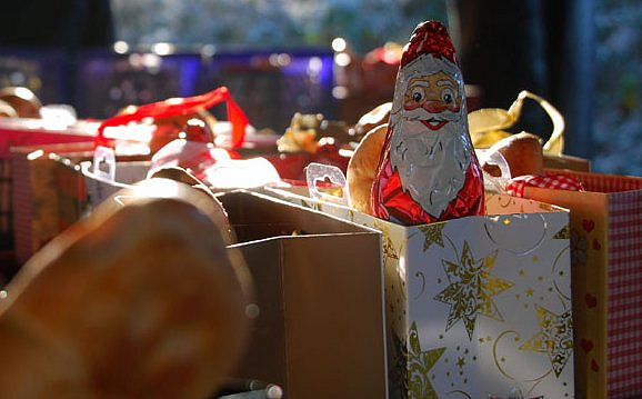 Natürlich hatte er auch wieder Tüten mit Weihnachtsgebäck und Süßigkeiten dabei, die er an die Kinder verteilte.