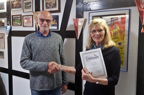Ehrenplakette durch den Ehrenpräsidenten Dieter Lösgen (10. Dan)