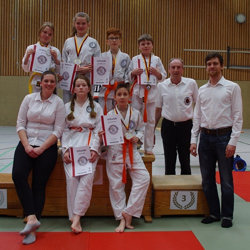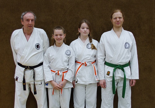 weiß-orangen Gürtel bekamen Hannah Schmitt, Jill Lott und David