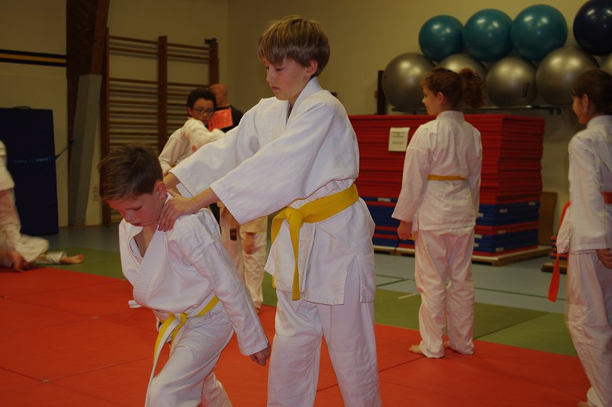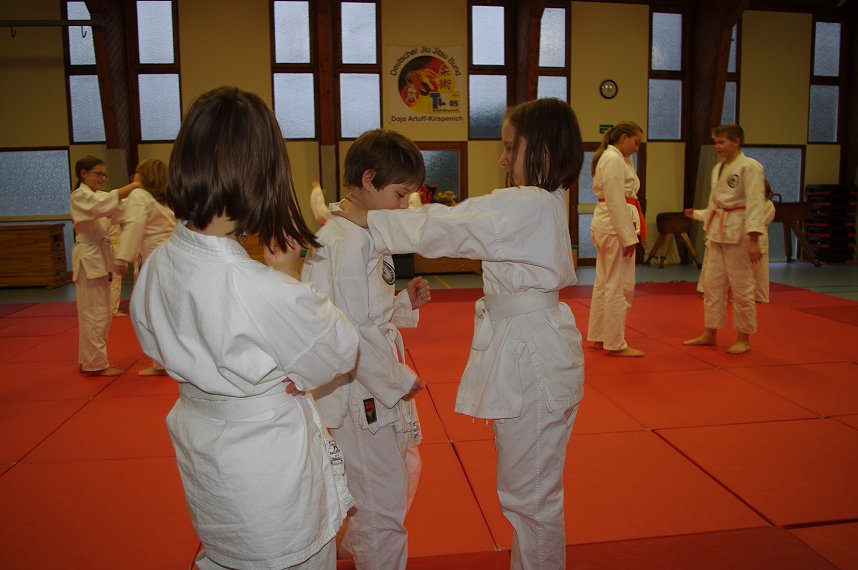 insbesondere am Jiu Jitsu zu wecken. Die Kinder werden auf spielerische Art "betriebsbereit" gemacht für die Abwehrtechniken, die André zwischen den Spielen immer wieder einstreute. Die Stimmschulung kam auch diesmal nicht zu