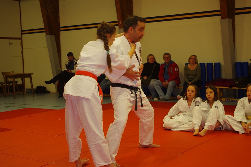 Fragen über Fragen, die im Kurs von den Vereinstrainern Josef Flecken und Elena Mies beantwortet wurden. Neben der Theorie wurden auch verschiedene Angriffe simuliert und Lösungsvorschläge angeboten. Die angebotene Zeit in diesen Workshops war natürlich viel zu kurz um allen möglichen Angriffen gerecht zu werden.