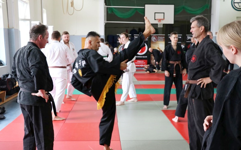 Tritt) angewandt werden, wie der Übungsleiter eindrucksvoll