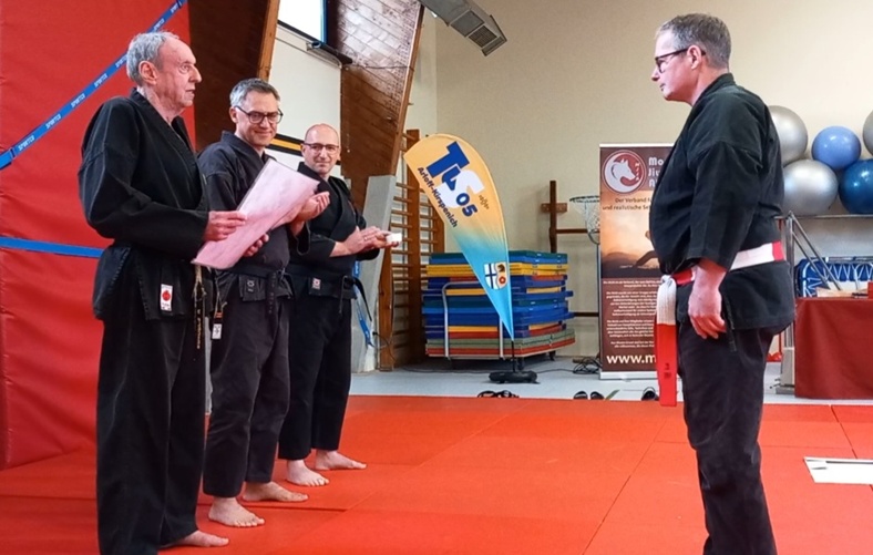 Der Fachsportverband MJJA e. V. ehrte Josef Flecken zum Abschluss für seinen langjährigen Einsatz im Jiu-Jitsu, die kontinuierliche Weiterentwicklung seiner Fähigkeiten sowie seine besondere Persönlichkeit mit der Verleihung des 4. Dan im Jiu-Jitsu. Als Zeichen der Wertschätzung erhielt er neben der Dan-Urkunde auch einen speziell angefertigten Ring des Verbandes.