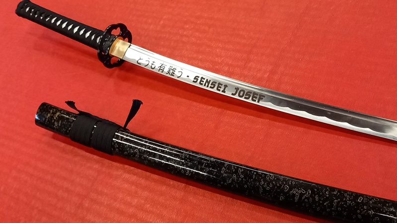 Ein einzigartiges und wertvolles Geschenk, ein Katana mit Gravur: "dōmo arigatō Sensei Josef"