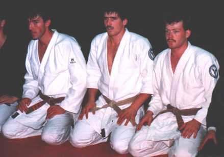sowie H. Jansen (re.) dem 1. Vorsitzenden des Deutschen Jiu-Jitsu-Bundes bei einem Besuch in unserer Arloffer Halle.